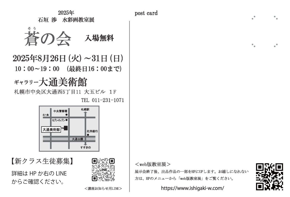 | 場所 | ギャラリー大通美術館 札幌市中央区大通西5丁目11 大五ビル1F 011-231-1071 |